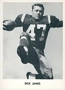 Richard "Dick" Alwin James (May 22, 1934 June 28, 2000) was an American football halfback and cornerback in the National Football League (NFL) for the Washington Redskins, New York Giants and the Minnesota Vikings. He played college football at the University of Oregon and was drafted in the eighth round of the 1956 NFL Draft. James' mother was Mohawk/Mohican Native American.
