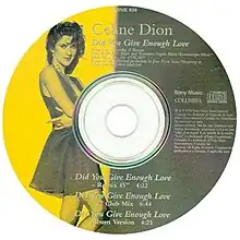 - ↑ "Celine Dion - Did You Give Enough Love (1993, CD)". Discogs. Retrieved 8 June 2023.