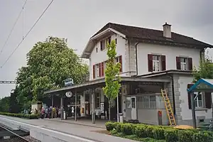 Diessenhofen railway station (German: Bahnhof Diessenhofen) is a railway station in Diessenhofen, in the Swiss canton of Thurgau. It is an intermediate stop on the Lake line and is served by local trains only.