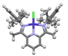 Structure of Co(DIP)Cl where DIP = C5H3N-2,6-(C(NAr)Me)2 (Ar = 2,6-diisopropylphenyl) derived from diacetylpyridine and 2,6-diisopropylaniline).[2]