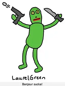 A 2014 drawing from a French-Canadian student (credited as "Laurel Green") mocking Dimoitou as a meme, a common occurrence on Doodle Per Diem[6]