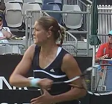 Safina played her first WTA Tour tournament of the season in Sydney, where she lost in the final to Elena Dementieva.[52] At the Australian Open, Safina defeated Alizé Cornet in the fourth round.[53] Safina defeated the Australian wild-card entry Jelena Dokić in the quarterfinals and Vera Zvonareva in the semifinals to reach the second Grand Slam final of her career.[54] She lost to Serena Williams in the final in 59 minutes.[55] After losing early in Dubai to Virginie Razzano,[56] Safina went on to the Indian Wells tournament, where she reached the quarterfinals before losing to Victoria Azarenka.[57] In Miami, Safina lost in the third round to Samantha Stosur.[58]