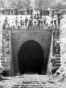 Dingess is widely known for an approximately mile-long tunnel situated on a county road south of town. Originally built by Italian immigrants, for the Norfolk and Western Railway, the tunnel opened for rail traffic on September 25, 1892. It has been opened to one-lane vehicular traffic since at least the mid-1900s.[3] Another, much shorter tunnel is located between Dingess and Breeden.