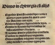 - Dynus super quarta Fen primi : cum tabula. - Venice : Lucas Antonius Giunta Florentinus, 1522. Digitised edition from Universitäts- und Landesbibliothek Düsseldorf