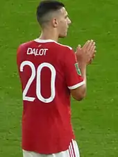 In October, he was named in Portugal's preliminary 55-man squad for the 2022 FIFA World Cup in Qatar,[52] being included in the final 26-man squad for the tournament.[53] Dalot initially started the tournament on the bench, amid João Cancelo's bad run of form, Portugal manager Fernando Santos started Dalot ahead of Cancelo in the team's round of 16 game against Switzerland, with Portugal winning the match 6–1.[54][55][56] Portugal employed the same strategy in the quarter-finals against Morocco, with Dalot starting once again. Portugal lost 1–0, however, with Morocco becoming the first CAF nation ever to reach the World Cup semi-finals.[57][58]
