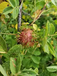 Diplolepis californica, formerly Rhodites californicus, also known as the leafy bract gall wasp, is a species of cynipid wasp that induces galls on wild roses on the Pacific coast of North America.[1][2] D. californica induces club-shaped bud galls that naturalist Richard A. Russo describes as "distinguished from all others by the flat, leafy lobes that emanate from the main gall body and look like aborted leaflets".[1] Each gall contains multiple larval chambers.[1] One of host plants of the leafy bract gall wasp is Rosa californica.[3]