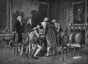 - ↑ Jonathan R. Dull (1987). A Diplomatic History of the American Revolution. Yale University Press. pp. 70–71. ISBN 0300038860.
