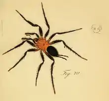 - ↑ Koch, C. L. (1850). Übersicht des Arachnidensystems. doi:10.5962/bhl.title.39561.