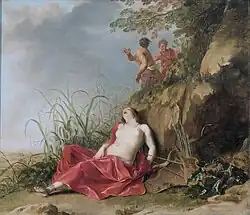 He has been called "Van Poelenburch's best pupil", but Houbraken did not mention his teacher at all, and in Van Poelenburch's biography he claimed that his best pupil was "Joan vander Lis", not Dirk vander Lis. The RKD mentions both Dirck van der Lisse and Jan van der Lijs as being pupils of Van Poelenburch.[3] His early paintings were frequently landscapes with nymphs, coming close to the style his master used around 1630, and even sometimes being mistaken for Van Poelenburch's at auctions. However, many displayed a distinctive style, which consisted of emptier, more horizontal compositions. In 1635, he was one of four painters commissioned to work on the Pastor Fido of Frederick Henry, Prince of Orange, painting one of the main scenes and one of the four subsidiary landscapes. Later in his career, as was common among his contemporaries, he largely abandoned landscapes in favor of the more lucrative business of portrait painting. Despite his apparent success as a painter, his paintings are relatively uncommon in inventories and auction catalogues before about 1640.