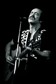 The studio recording of the song was released as the third piece on the album Workingman's Dead in May 1970.[4][5][7] Its first known performance was at San Francisco's California Hall, on June 7, 1969. The song became a staple of the Grateful Dead's live performances; the electric version of the song was typically featured on the band's first set.[4][7] According to The Grateful Dead's 100 Essential Songs, "Dire Wolf" was played 226 times between 1969 and 1995, and was played every year, except for 1975. Sixty-three of these performances were in the first two years after the song was written. In later years, the acoustic version of the piece became more common.[7] The structure and pace of the song did not change much over the years. It was sung most often by Garcia, although an early version featured Bob Weir on vocals, with Garcia playing the pedal steel guitar instead.[7] An AllMusic review of this version praised Garcia's "sweet" guitar playing as a "great feature" of the song.[5] Its lyrics have led to it being described as an essential Grateful Dead song by commentators.[7]