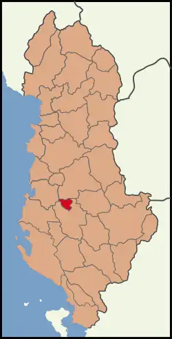 Kuçovë District (Albanian: Rrethi i Kuçovës) was one of the 36 districts of Albania, which were dissolved in July 2000 and replaced by 12 counties. It had a population of 35,571 in 2001, and an area of 112 km2 (43 sq mi), making it the smallest district of Albania.[1] It is in the centre of the country, and its capital was the former municipality of Kuçovë (which in 2015 became a sub-unit of the larger municipality of the same name). Its territory is now part of Berat County: the municipality of Kuçovë (partly).