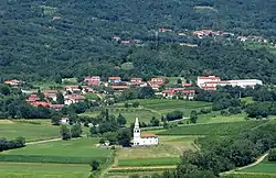 The local church is dedicated to Saint Peter and belongs to the Parish of Vipavski Križ.[3] It dates to 1641 and contains paintings by the Slovenian Baroque painter Anton Čebej from 1768.