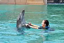 The popularity of swimming with dolphins increased in the 1980s and 1990s, occurring in over 65 countries,[1] both as a form of therapy as well as a tourist activity.[1][2] Proponents of dolphin-assisted therapy (DAT) say that interacting with dolphins can help to treat mental and physical disorders in humans, but there is limited clinical evidence proving its benefits.[3][4] Marine parks and other tourist destinations offering "swim-with-dolphin" experiences have also promoted the purported healing attributes of dolphins.[5] Opponents argue that interactions between humans and dolphins have had a negative impact on dolphin populations both in the wild and in captivity,[6] and that the practice can be dangerous for humans.[4] Concerns over animal welfare have led to bans on swimming with dolphins in Costa Rica,[7] as well as certain locations in New Zealand and Hawaii.[6][8]
