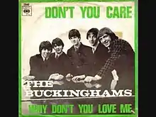 "Don't You Care" is a single by The Buckinghams from the album Time & Charges. The song spent 14 weeks on the Billboard Hot 100 in 1967, reaching No. 6,[3] while reaching No. 1 in the Philippines,[4] and No. 4 on Canada's RPM 100.[5] It was recorded in Columbia's 16-track New York Studios.[6]