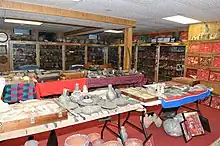 Notably, Miller's collection included over 2,000 human bones from an estimated 500 individuals that were looted from Native American burial grounds.[10] FBI agents discovered an articulated skeleton in a display case and Miller claimed that it was the remains of Crazy Horse, a famous Lakota war leader. It was later discovered that this skeleton was actually an amalgamation of bones from several individuals that Miller had allegedly glued together.[5] Agents also discovered skulls that were pierced with arrowheads, which were also apparently staged by Miller.[5] Carpenter reported that some of the bones were neatly arranged and displayed while others were wrapped in black garbage bags and stored in a defunct fallout shelter.[6] The FBI partnered with tribal authorities and academics to identify the origins of the remains and attempt to repatriate them.[2] Pete Coffey, a tribal official of the Mandan, Hidatsa, and Arikara nations, emphasized the damage that has been caused by Miller's actions and the spiritual importance of returning ancestors' remains to their resting places.[11]