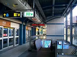 The station design theme is "Music".[4] Surface designs in the station square represent a dancing musical staff. Silk fabric is printed on enamel slab art walls at the concourse level to represent romantic urban music.[5]