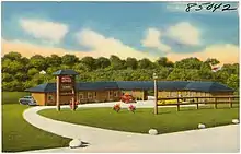 E. V. Yeager owned a sporting goods business on nearby Route 88, and in 1949 moved it to U.S. Route 1 (US 1),[3] to open the following year as the Down-East Village Motel, with a Gulf gas station. They leased the restaurant to Simpson's Hamburger.[4]