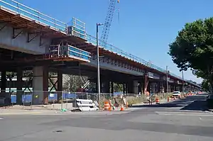 The station was originally included in the Sound Transit 2 ballot measure in 2008, but was left out of the East Link Extension after a funding shortfall stemming from the City of Bellevue's desire for a tunneled alignment under Downtown Bellevue.[3] Sound Transit instead completed environmental reviews and selected a preferred alignment to Downtown Redmond, indefinitely deferring the final segment of East Link until a later date.[4] The Sound Transit 3 ballot measure, passed in 2016, includes $1.1 billion in funding for the two stations in Downtown Redmond, which was planned to open by 2024.[5] Preliminary engineering on the Redmond extension was approved in February 2016, after being suspended in 2010.[6]