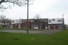 ![]() Boarded up, flat-roofed houses in Doxford Park | |