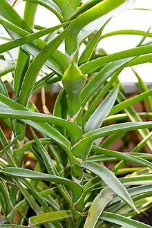 It very closely resembles the related Dracaena arborescens, which has wider, more pliable leaves. The leaves of D. bagamoyensis are narrower (under 16 millimetres (0.63 in)) and more brittle.[4][5]