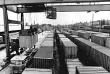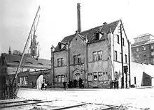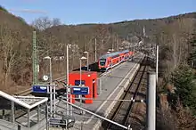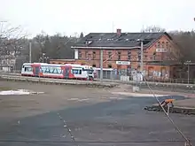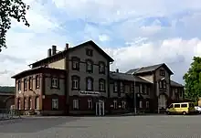 Of the six Freital stations, Freital-Potschappel station is the most important.[29] The Niederhermsdorfer Kohlezweigbahn ("Niederhermsdorf coal branch railway") branched off here to two coal shafts from 1856 onwards. Its route was used in the construction of the 750 mm gauge Potschappel–Wilsdruff railway opened in 1886. Extensive goods and transhipment facilities were built In Potschappel, which were further expanded during the elevation of the line and its quadruplication after 1900.[30]