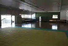 The layout of the drill shed consists of a large hall with a series of five rooms along the north-west side. Eight doors lead to these rooms however only three are operational. Doors in the north-east and south- west walls lead to the two side additions. A ceiling has been installed in the hall area, attached to the bottom chord of the timber roof trusses but with diagonal timber supporting members protruding through it along the north-west and south-east sides. The walls are lined with timber tongue-and-groove boards; vertical v-jointed boards on the north-east, south-east and south-west walls; and wide horizontal beaded boards on the north-west wall. A timber belt rail and timber skirting run around the entire hall. The floor is lined with narrow polished timber boards. Of the eight doors along the north-west wall, six are matching timber-battened doors, some with early door hardware. The door at the western end is of a similar style but made from narrower timber boards, while the door at the eastern end is a modern double door.[1]