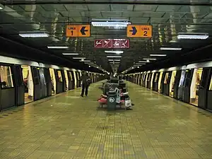 Dristor 1 is where M3 service and through M1 service stops.[1] It is above Dristor 2 and has one island platform.