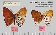 - ↑ Seitz, A., 1912-1927. Die Indo-Australien Tagfalter. Theclinae, Poritiinae, Hesperiidae. Grossschmetterlinge Erde 9: 799-1107, pls. 138-175.