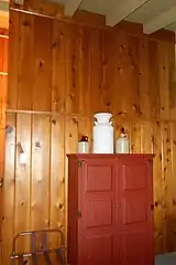 The interior, designed by Annabel with help from her daughter, had walls paneled with knotty pine and the carpets had cattle brands woven into the design. Smaller Navajo rugs were used in uncarpeted areas. Rope was used for handrails on the stairs. A small, home-like lounge in the lobby area with exposed fir ceiling joists and a fireplace completed the facility. Furniture with an "Old West" look was custom-designed for the rooms, and the original window drapes featured scenes from Montana history. The original carpet was replaced with a similar design in 1984 when a major remodeling occurred, and the closets on the north wing of the building were torn out and replaced with armoires in order to allow for the bathrooms to be remodeled, but many of the original furnishings remain, particularly on the south wing of the building.[1]