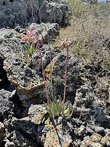 Dudleya cultrata inflorescence with Dudleya anthonyi in the background.