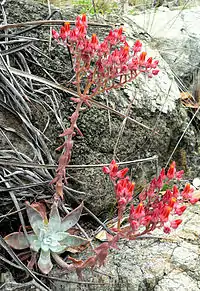 Dudleya cymosa is a species complex of evergreen and deciduous succulent plants in the family Crassulaceae known by the common name: canyon liveforever.[1][2] It is a loosely defined polyphyletic[3] species with a diverse number of subspecies, varying highly in morphology, distribution, and habitat.[4]
