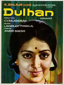 Dulhan (transl.Bride) is a 1974 Indian Hindi-language drama film, produced by B. Anand Valli under the Sujatha International banner and directed by C. V. Rajendran. It stars Jeetendra, Hema Malini and Jamuna. The film is a remake of 1972 Kannada movie Yaava Janmada Maitri [1] which was earlier remade in Telugu as Sarada (1973).[2]