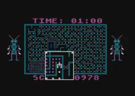 Dung Beetles is an Apple II maze game by Bob Bishop published in 1982 by Datasoft.[1] The gameplay is similar to Pac-Man, but a portion of the maze around the player-controlled character is enlarged as if being viewed through a square magnifying lens.