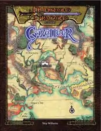 The Dungeons & Dragons Gazetteer details the lands of Greyhawk, the 3rd edition core world of Dungeons & Dragons. The book's introduction noted that the D&D game setting is located on Oerth, more specifically on the continent of Oerik, in its easternmost portion called the Flanaess. The book then goes on the briefly cover the history of the region, as well as an atlas that providesa a short description of the most important kingdoms.[1] There is also a chapter on geography, and a listing of some of the most influential groups in the region.[1]