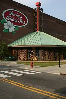 Durham Central Park is an arts-themed, community-focused, municipal park in downtown Durham, North Carolina. It is located at 502 Foster Street, and is the site of the newly opened Pavilion at Durham Central Park which hosts the Durham Farmers' Market.