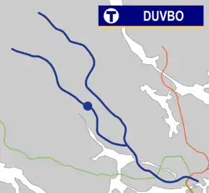 Duvbo metro station is a station on the blue line of the Stockholm metro, located in Central Sundbyberg in Sundbyberg Municipality. It is named after the nearby Duvbo area. The station was inaugurated on 18 August 1985 as part of the extension to between Västra skogen and Rinkeby.[2] It became the 98th station of Stockholm metro.