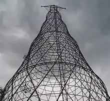 Shukhov Tower on the Oka River, the unique architectural construction—the 128-meter (420 ft) steel lattice hyperboloid tower built by Soviet engineer and scientist Vladimir Shukhov in 1929—is located near Dzerzhinsk on the left bank of the Oka River. There used to be two towers, but one was stolen for scrap metal in 2005.