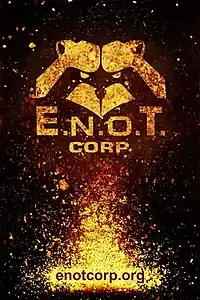 E.N.O.T. is an acronym of the organisation's full name, Russian: Единые народные общинные товарищества, romanized: Yedinyye narodnyye obshchinnyye tovarishchestva, lit.'United People's Communal Partnerships'. Enot (енот) is also Russian for racoon, the animal the group uses as a logo.[4]
