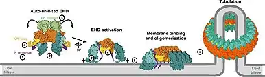 6. 1 2 Melo AA, Hegde BG, Shah C, Larsson E, Isas JM, Kunz S, et al. (May 2017). "Structural insights into the activation mechanism of dynamin-like EHD ATPases". Proceedings of the National Academy of Sciences of the United States of America. 114 (22): 5629–5634. Bibcode:2017PNAS..114.5629M. doi:10.1073/pnas.1614075114. PMC 5465921. PMID 28228524.