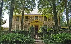 The three-part house consists of a tall, 2+12-story 5-bay Georgian portion and two long 1+12-story portions. The newest portion, the garage wing, incorporates timbers salvaged from the old slave quarters before the flooding of the valley in order to create Loch Raven Reservoir. The house features a profusion of original detail including the fine main entrance, the interior woodwork, the original arcade, period outbuildings including the smokehouse, icehouse, springhouse, and root cellar.[2] Foundation ruins of the barn, tenant farmer's house, and tollbooth still stand, though now on neighboring properties.