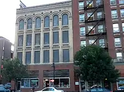 The Earle & LeBosquet Block, also known as the Redhead & Wellslager Block, is a historic building located in Des Moines, Iowa, United States. Completed in 1896, the building is a fine example of the work of Des Moines architect Charles E. Eastman.[2] It shows Eastman's ability to use Neoclassical forms and integrate the more modern Chicago Commercial style. It is also an early use of terra cotta for architectural detailing and buff-colored brick for the main facade in Des Moines, which became widespread in the city in the following decades.[2] The main floor housed two commercial spaces and the upper floors were used for warehouse space. The four-story structure was built by local contractor Gerrit Van Ginkel, and it was owned by attorneys Ira M. Earle and Peter S. LeBosquet. It replaced a three-story brick building that was built at this location in 1876. The building was listed on the National Register of Historic Places in 2009.[1]