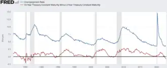 The United States entered a recession in 1990, which lasted 8 months through March 1991.[1] Although the recession was mild relative to other post-war recessions,[2] it was characterized by a sluggish employment recovery, most commonly referred to as a jobless recovery. Unemployment continued to rise through June 1992, even though a positive economic growth rate had returned the previous year.[3][4]