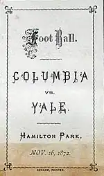Program for the first Columbia v Yale game, 1872