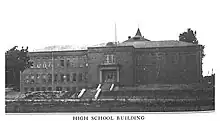 When the building opened in the fall of 1909, its classrooms allowed the seventh through tenth grades to have their own rooms for the first time (an eleventh grade was added in the 1920-21 school year.[4] The school had outgrown the facility by 1938 and a new building was constructed on a different site in 1939-40.[4] Following completion of the new school building, the auditorium was occupied by a shirt manufacturer until 1964.