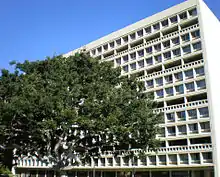 Hale Manoa is the East–West Center's student dormitory.[31] This 13-story building, constructed in 1962, was designed by American architect I. M. Pei, and is located in the University of Hawaiʻi, Honolulu.[32] The dormitory has a housing capacity of more than 400. This is a predominantly graduate student dormitory and most of the residents are mainly recipients of East West Center scholarships or are affiliated with their programs. Hence here there are EWC Graduate Degree Fellows, Asia Pacific Leadership Program participants, EWC Affiliates and others who are not directly funded by the EWC. A large majority of the residents are international students from the Asia-Pacific region like China, Japan, Thailand, Vietnam, The Philippines, and Indonesia. Recently, there has been a move to bring in more students from South Asian countries.