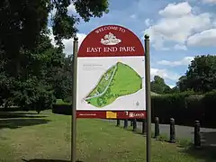 East End Park was originally part of the grounds of a mansion, Osmondthorpe Hall (destroyed by fire in 1924), sold to the city in 1886.[7] It is now managed by Parks and Countryside, part of the Learning and Leisure Department, Leeds City Council. It offers has bowling greens, tennis courts, football pitches and a basketball court. There are plenty of open spaces in the park and areas of well established woodland. There are also seating areas amongst rose and shrub beds. The park hosts many events throughout the year including an annual bonfire and fun fair which attracts up to 10,000 visitors. A tennis camp is held each August for young people.[8]