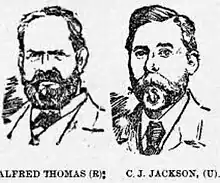 Following the creation of the seat in 1885, there was a contest for the nomination. Following a meeting at Pontypridd, a number of candidates were proposed and invited to address public meetings. They included T. Marchant Williams, Lewis Morris and the Rev Aaron Davies.[1] Ultimately the two leading candidates proved to be Alfred Thomas, a prominent figure in the public life of Cardiff, where he had served as Mayor in 1881–2, and William Bowen Rowlands, a Pembrokeshire-born lawyer. After a contest lasting several months, Rowlands withdrew, ostensibly to prevent a split in the Liberal vote following the appearance of a Conservative candidate. However, Rowlands was regarded as far less radical than his opponent.[2] A leading Baptist, Thomas's victory owed much to his nonconformist connections, upon which this 'amiable and benevolent man' based much of his political outlook.[3]