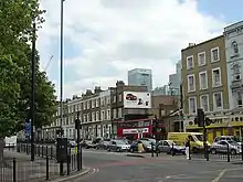 The road begins in the west at Burdett Road and continues to the River Lea bridge in the east at Bow Creek.[2] It was built in order to connect the newly built Commercial Road at Limehouse with the East India Docks, which opened in 1806, bypassing Poplar High Street.[3] It passed over undeveloped land and was assumed to be cheap to construct, but the costs of buying garden land proved higher than anticipated.[2]