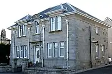 In the early 20th century, the population of East Kilbride was less than 4,000.[1] The first municipal building there was the old parish chambers in Main Street which was designed in the style of a villa, built in sandstone and was completed in 1913.[2] The design involved a symmetrical main frontage of three bays facing onto Main Street. The central bay featured a doorway with a stone surround, a keystone and a cornice surmounted by a panel inscribed with the words "Parish Council Chambers 1913"; on the first floor, there was a single window surmounted by a segmental pediment. The outer bays were fenestrated by tri-partite windows on the ground floor and by bi-partite windows with dormer heads on the first floor.[2]