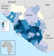 The Neini Chiefdom in Koinadugu District was subject to isolation after Ebola cases.[100] On 19 November, it was reported that the Ebola virus was spreading intensely; "much of this was driven by intense transmission in the country's west and north", the WHO said.[101]